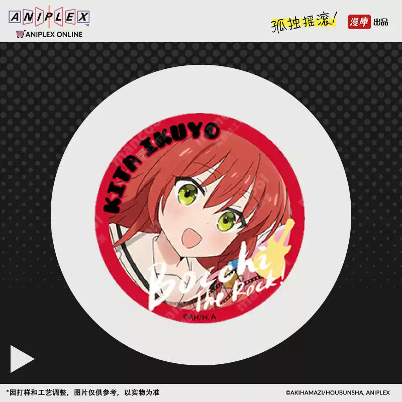 Celebrate Bocchi the Rock!'s musical magic with this official 4-piece vinyl record badge set! Each 58mm pin features a band member designed like a classic record sleeve, complete with their iconic instruments and personalities.