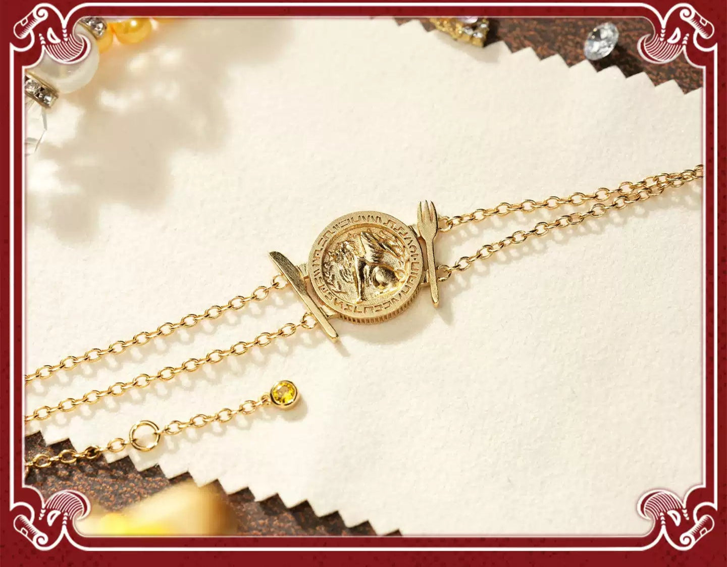 Channel Marcielle's alchemy skills with this exquisite coin bug bracelet from Delicious in Dungeon! Meticulously crafted with gold-plated copper and sparkling synthetic gems, this adjustable bracelet brings the fantasy world to your wrist.